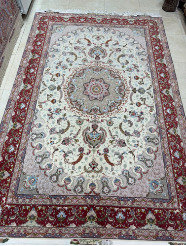 تک قالیچه طرح خطیبی کرم چله ابریشم