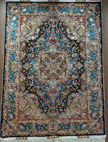 قالیچه ۱/۵ * ۲ چله ابرشم گلستان طرح خیابانی