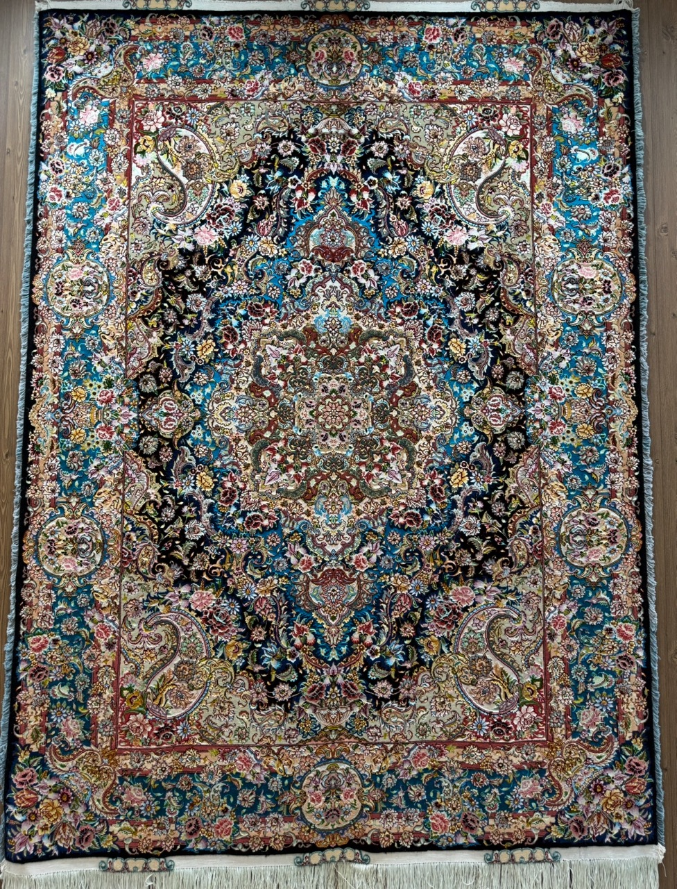 قالیچه ۱/۵ * ۲ چله ابرشم گلستان طرح خیابانی