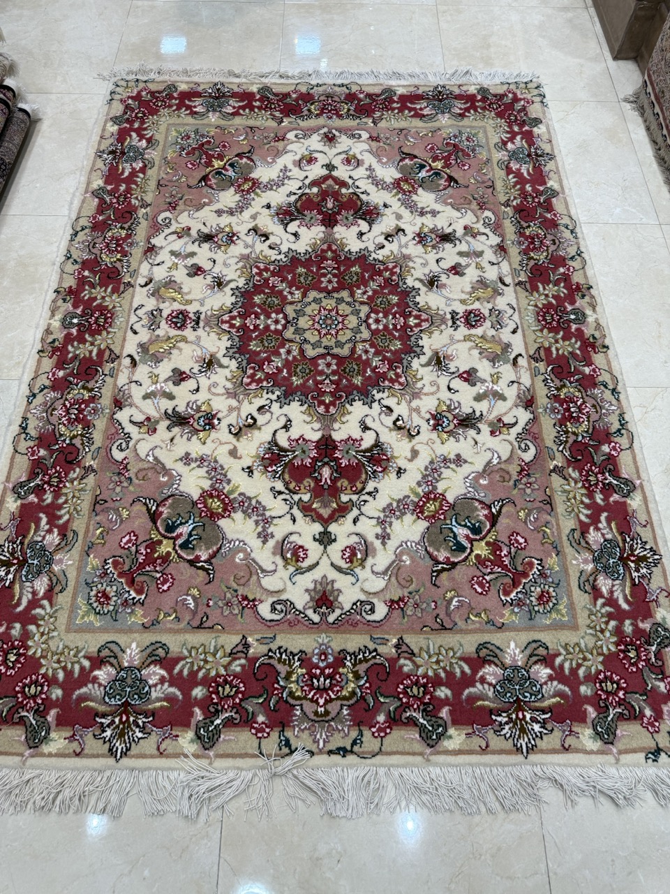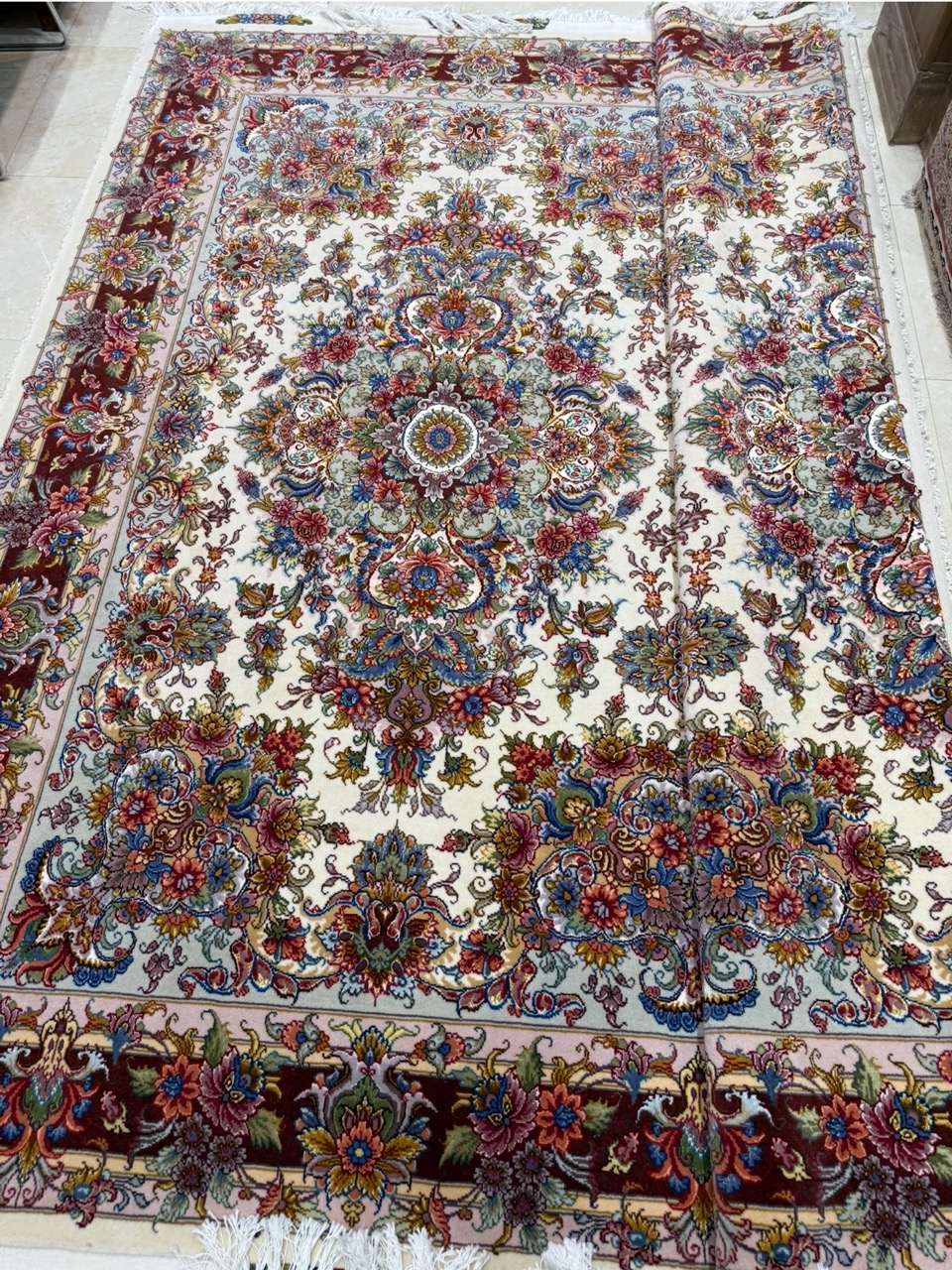 تک قالیچه طرح خطیبی کرم چله ابریشم