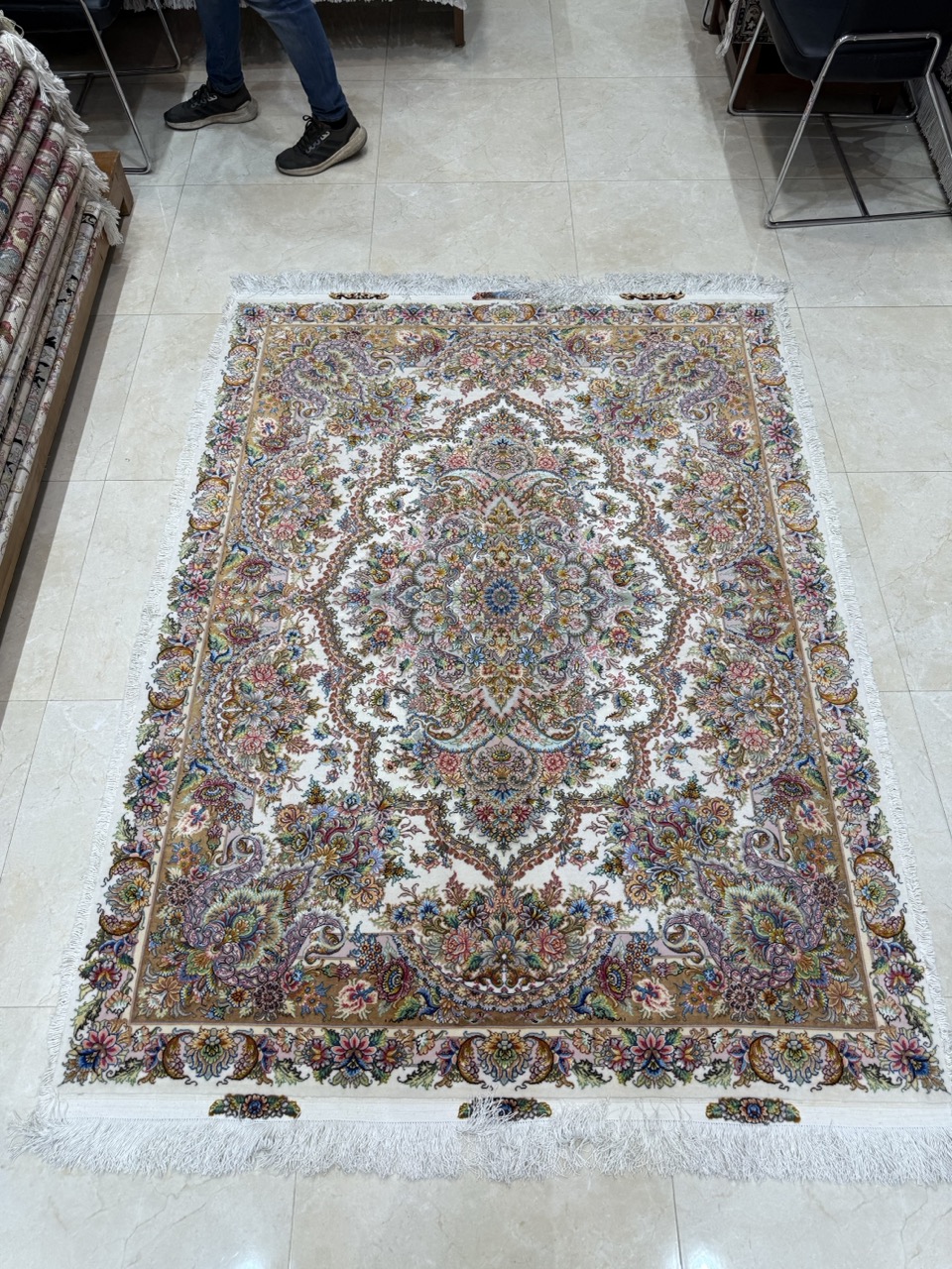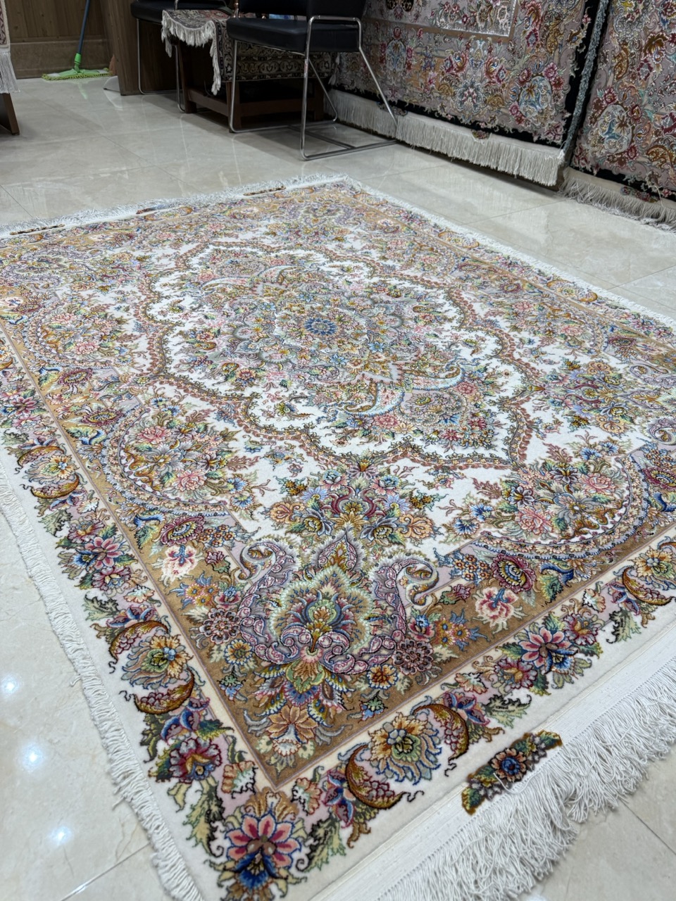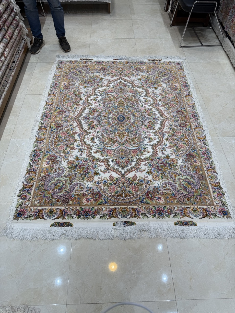 تک قالیچه طرح خطیبی کرم چله ابریشم