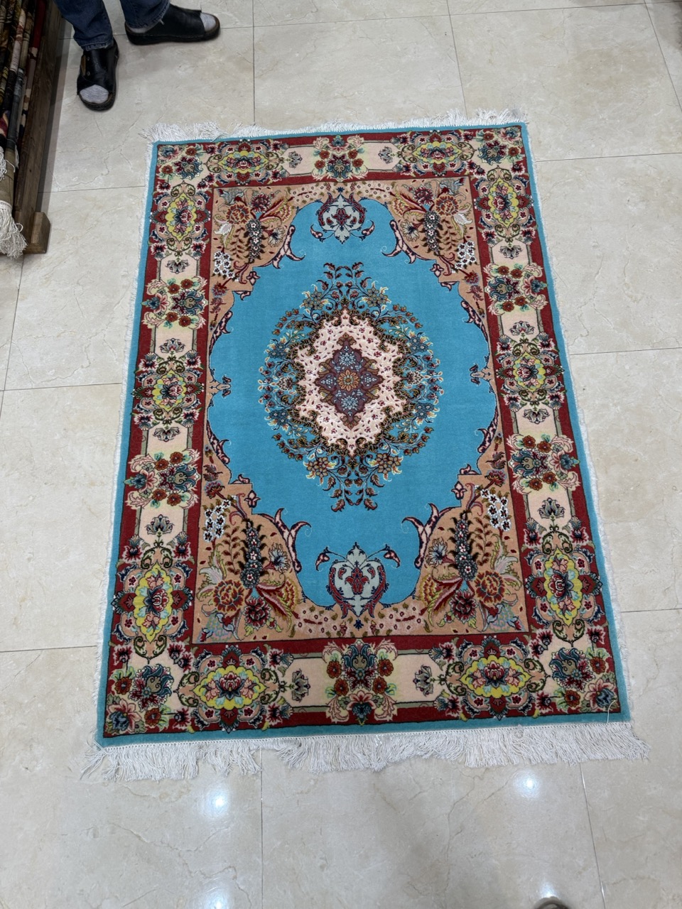 تک زرنیم طرح حقیقیان فیروزه ایی کف ساده چله نخ