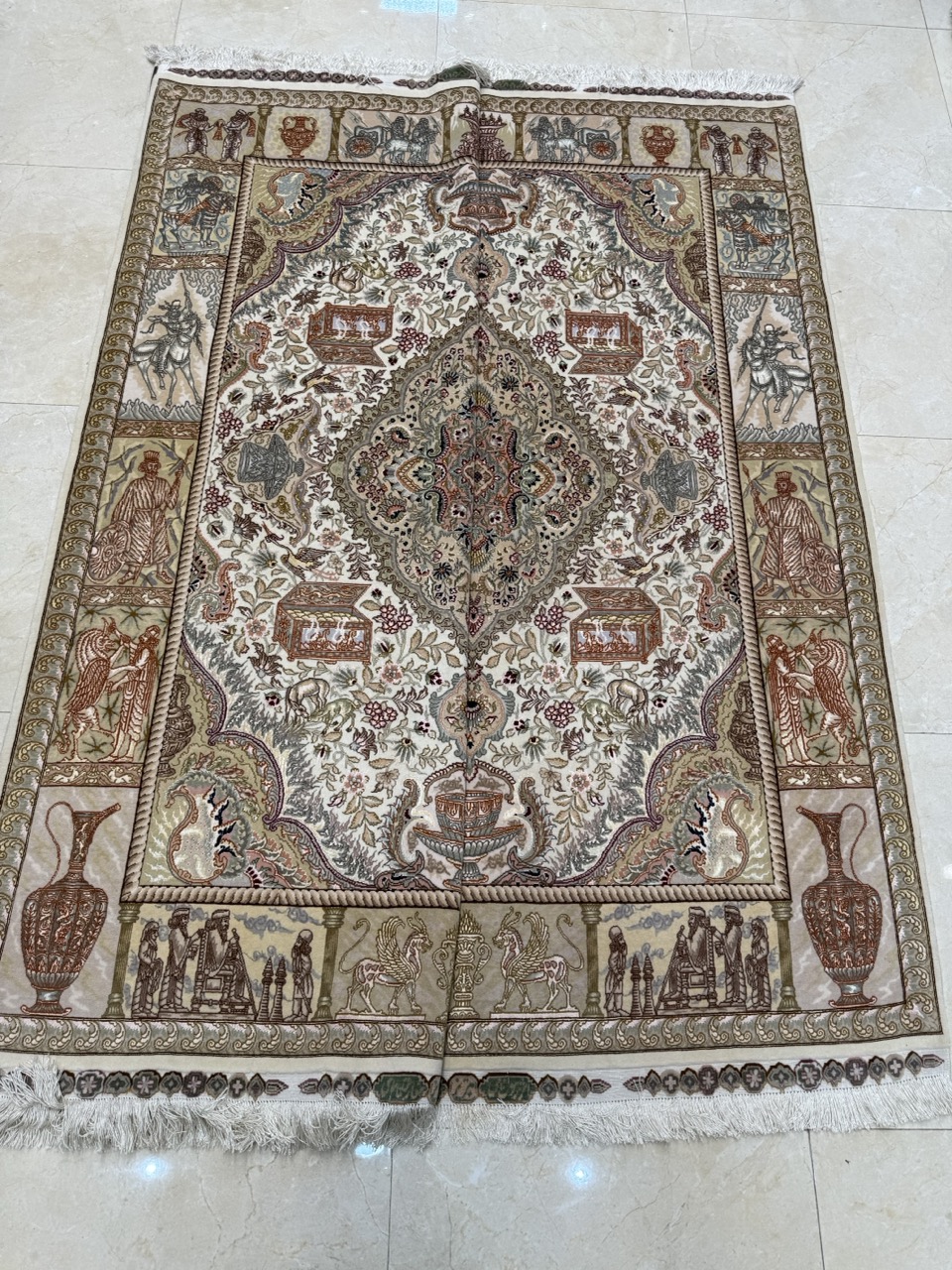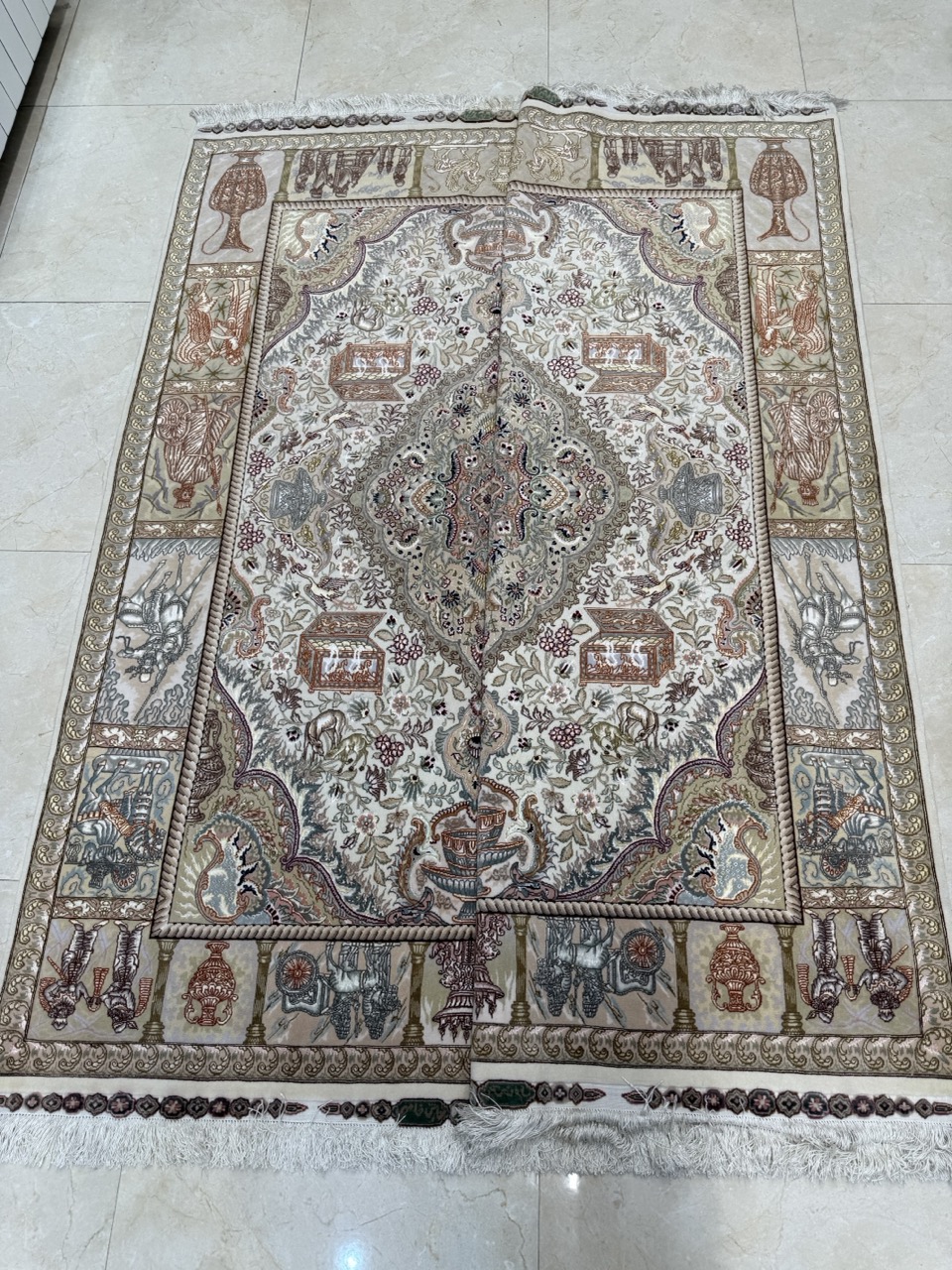 جفت قالیچه نامی کرم ۶۰ رج رایج بازار کارکرده